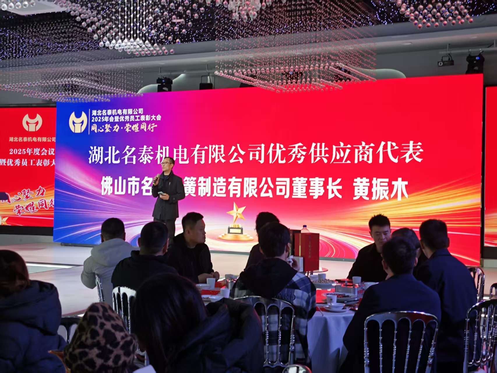 近日,湖北名泰機(jī)電有限公司2025年會暨優(yōu)秀員工表彰大會隆重舉行,現(xiàn)場氛圍熱烈,掌聲雷動(dòng)。我司(佛山市名汽彈簧制造有限公司)憑借25載的誠信履約、品質(zhì)堅(jiān)守與高效服務(wù),榮獲“優(yōu)秀供應(yīng)商”稱號,公司代表黃振木先生受邀出席大會,并作為優(yōu)秀供應(yīng)商代表上臺發(fā)表感言,傳遞合作初心,共繪發(fā)展藍(lán)圖。